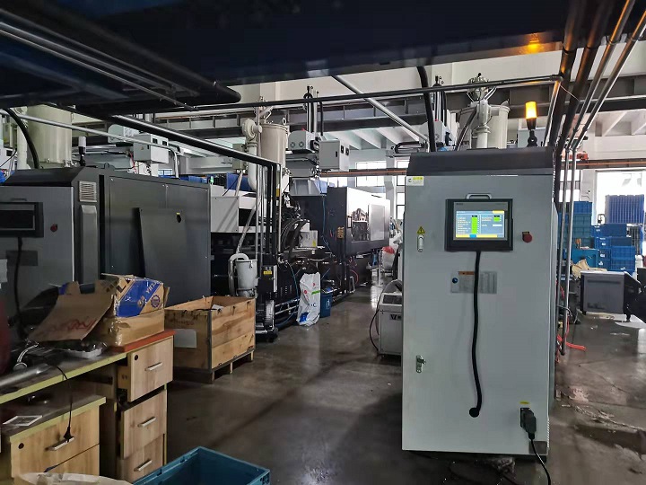 高溫熱水、冷水,空氣溫度及壓力六項報警,采用時間和溫度動作與注塑機信號互鎖。